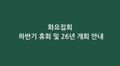 마감됐습니다. 일 시 : 2025년 12월 6일(토) 시 간 : 오전 10:00 – 오후 6:00 장 소 : 헤븐리터치 센터 등록비: 1만원/ 점심 및 선물 제공 대 상 : HTM파트너 혹은 킹덤빌더스쿨 졸업생, E-러닝스쿨 수강생, HTM비전교회 교인 주 차 : 주차장이 협소합니다. 대중교통 이용을 적극 권장합니다.(신림선 보라매병원역 1번 출구에서 도보 1분) 사랑하는 파트너, 킹덤빌더스쿨 졸업생, […]